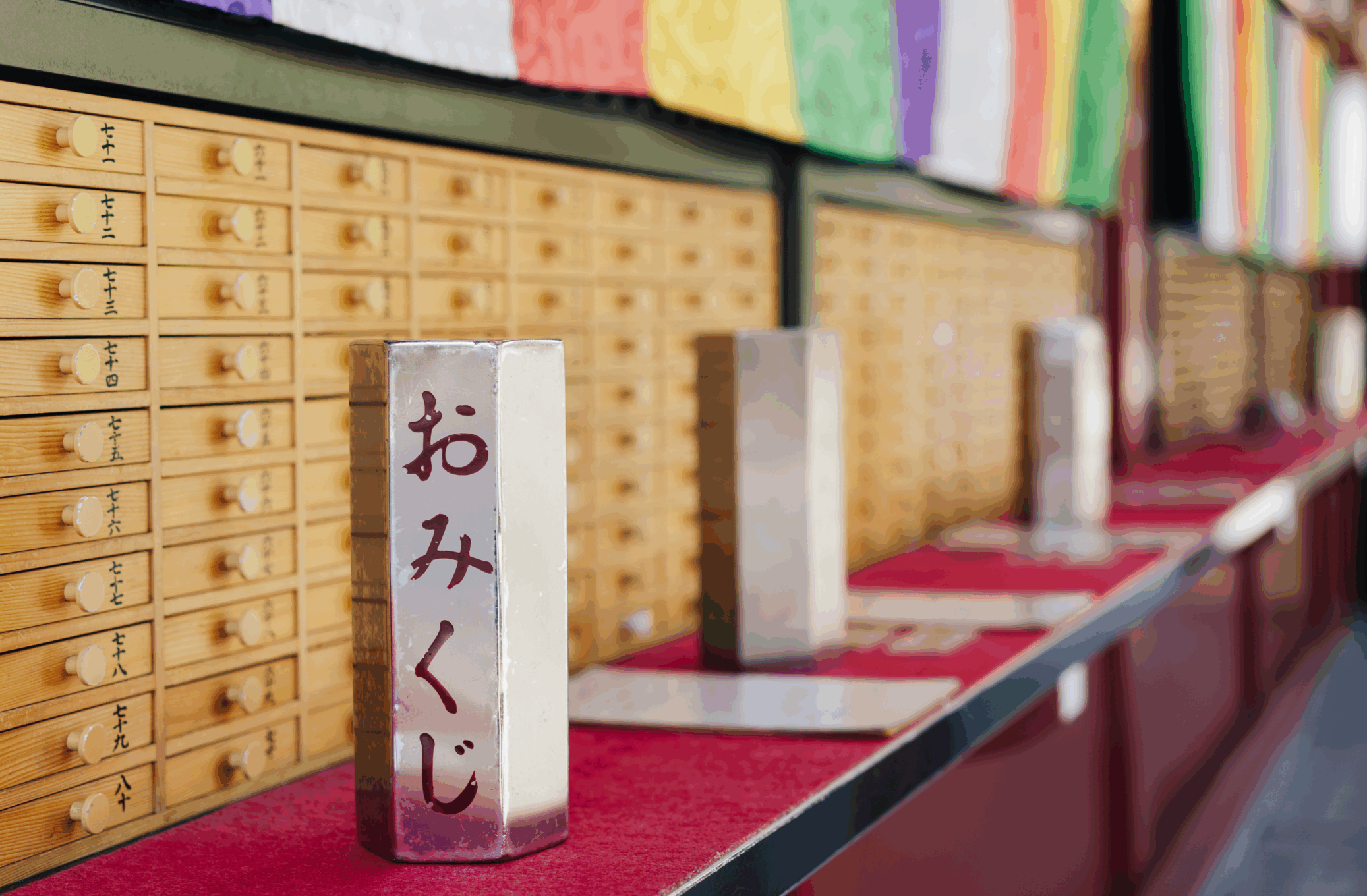 Omikuji are paper fortunes you draw at random from a box or receive from a vending-style machine.